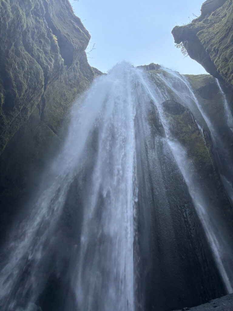 Just a short walk away is Gljúfrabúi, the “hidden waterfall.” For me, this was a must-see – even though I was pressed for time on the tour, I wasn’t going to miss it. After a quick dash between the two falls and getting my feet wet to reach it, the experience was completely worth it.