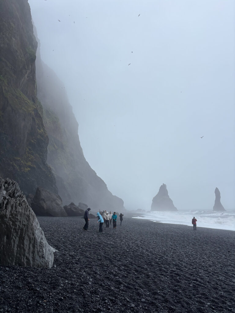 One of the most striking landscapes I encountered on this trip, Reynisfjara is famous for its black sand, towering basalt columns, and powerful, unpredictable waves. Standing at the edge of the beach and looking up at the columns makes you feel truly tiny in comparison – it’s awe-inspiring.
