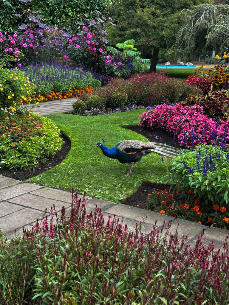Beacon Hill Park is one of downtown Victoria’s must-visit free attractions, and it’s just a short walk from most hotels. The park covers over 200 acres, with a mix of manicured flower beds, fountains, ponds, and open green spaces that are perfect for a picnic or a stroll. Wildlife is abundant – you’re likely to spot ducks and herons around the water features, and even peacocks wandering freely through the grounds. There are also walking trails, a children’s playground, and viewpoints along the coastline with sweeping views across the Strait of Juan de Fuca to the Olympic Mountains in Washington.