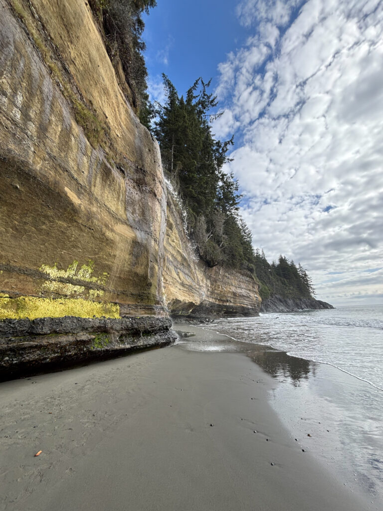 Less than two hours from downtown Victoria, tucked away on the southwest coast of Vancouver Island along the Strait of Juan de Fuca, lies the stunning Sombrio Beach. It’s a favourite spot for surfers, backcountry campers, and – if you know where to look – a hidden waterfall.